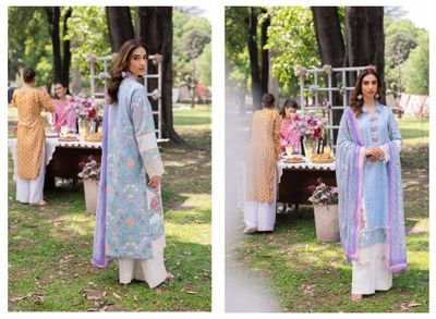 RajBari Schiffli Printkari is a 3-piece luxury lawn set with intricate schiffli embroidery, digital print chiffon dupatta, and dyed trousers — blending elegance, comfort, and premium craftsmanship for any festive or casual occasion.